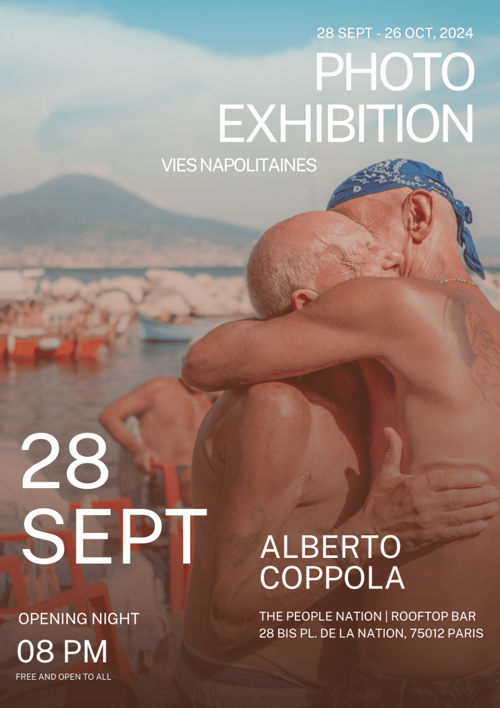 The exhibition is held in an hotel rooftop bar, providing a breathtaking view of Paris’ iconic monuments. After exploring Alberto’s photographs, enjoy the relaxing atmosphere and stunning vistas while savoring drinks and food with a touch of Italy.